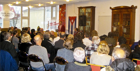 På kvällen deltog ambassadörsparet i en trevlig och välbesökt fest på vilken många Jönköpingsbor passade på att hylla de framsteg Kuba uppnått under de femtio år sedan diktaturen störtats av det kubanska folket under ledning av Fidel Castro.