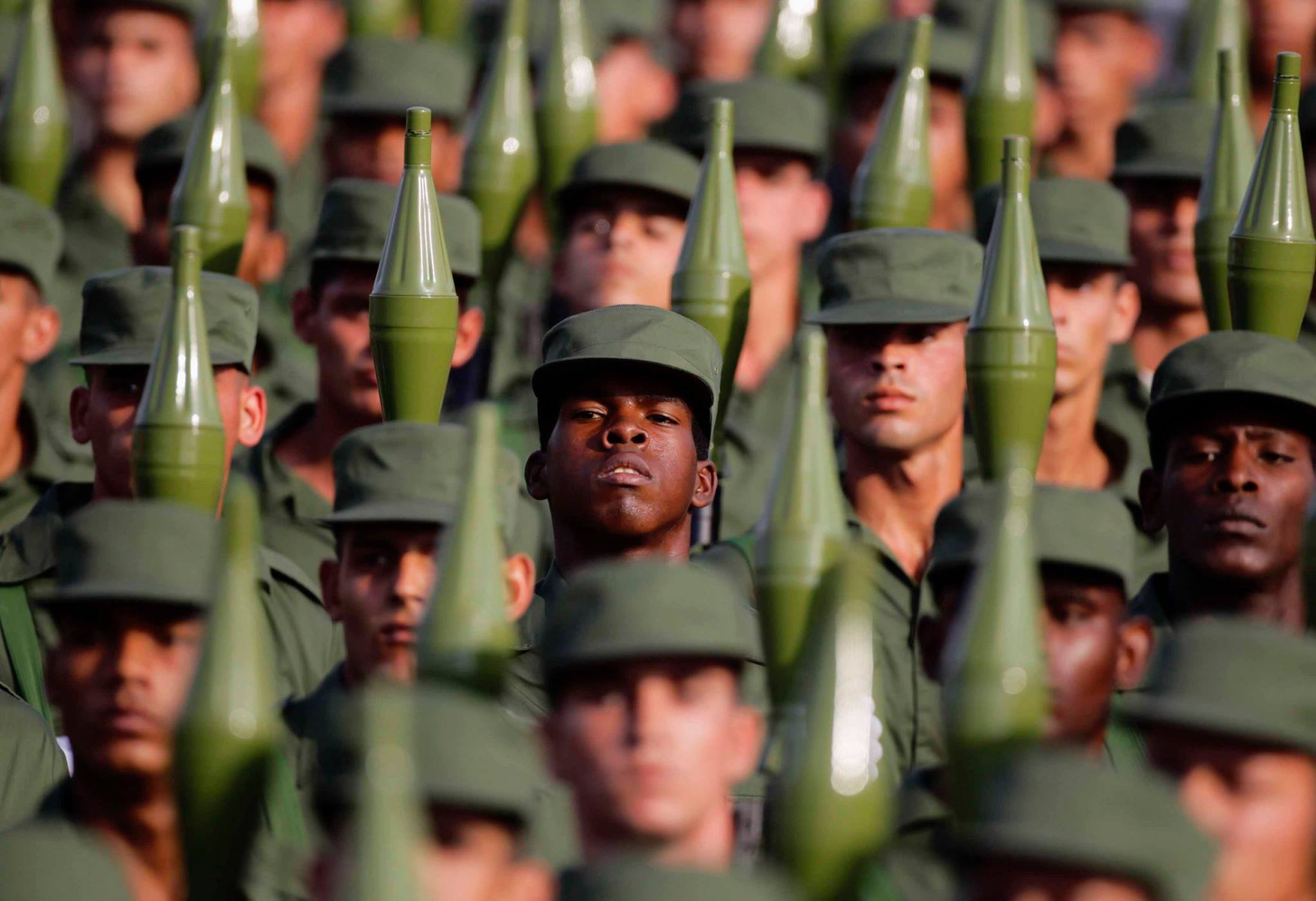 Kubanska soldater. I Kuba. För att försvara sitt land mot USA.