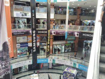 För att skaffa en venezuelansk telefon och ett simkort för internet gick jag till ett köpcentrum som specialiserar sig på telefoner. Det var extraordinärt. Fyra våningar med små telefon- och datorbutiker, alla fyllda med varor, organiserade i tre koncentriska cirklar av trappstegsformade balkonger. Denna bild visar bara den inre cirkeln. Jag köpte en telefon, ett simkort, mikrofoner, en powerbank, en multisystemförlängningssladd och en ethernet-till-USB-adapter, allt i den första lilla butiken jag gick in i.