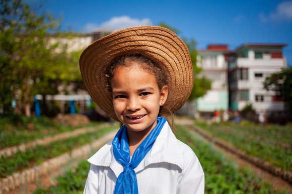 Pionjär i Frank País García-skolans köksträdgård, Havanna. Foto: Enro/ Cubadebate.