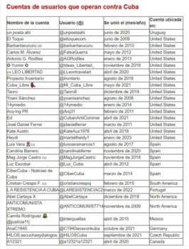 Antikubanska konton. Många ger sig ut för att vara baserade i Kuba och återge vad kubanerna tycker. Det har visat sig vara lögn.