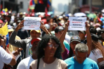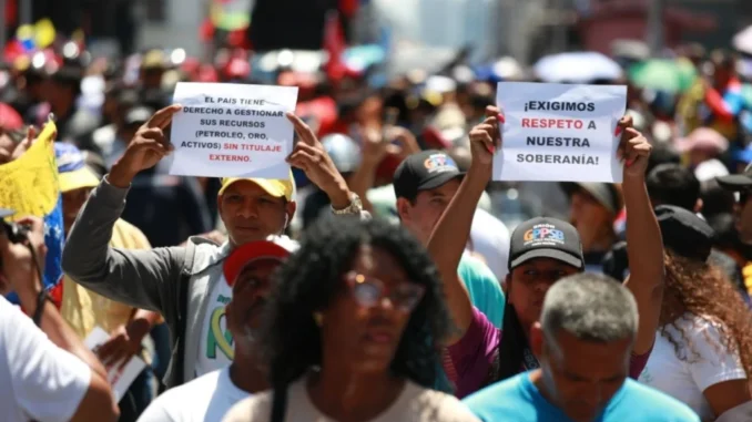 ”Vi kräver respekt för vår suveränitet”. Demonstration i Caracas. Foto: Telesur.
