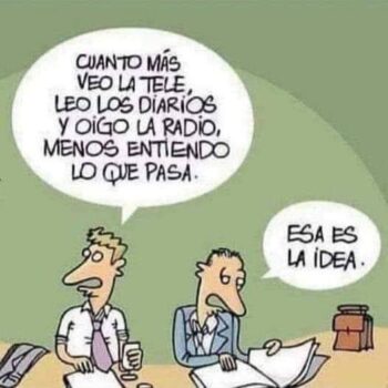 ”Ju mer jag tittar på TV, läser dagstidningar och lyssnar på radio desto mindre begriper jag av det som händer”. ”Det är det som är meningen.