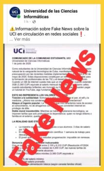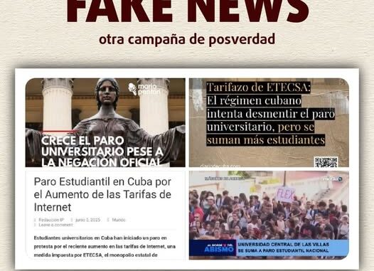Ett av de många inlägg från Miami som översvämmar nätet på Kuba. Fake news från högerpolitikern Elvira Salazar i Florida. ”BRÅDSKANDE: Studenter på Havannas universitet upprätthåller strejk efter den brutala prishöjningen från regimen. Den kubanska ungdomen förlorar rädslan och ger ett exempel till hela ön. Till regimen: Er tid är ute. Vi har koll på er. Och denna gången finns det en stark ledare i Vita Huset som är på det kubanska folkets sida. Ner med diktaturen, frihet nu!”