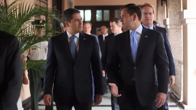 Rubio var en flitig besökare hos narkotikasmugglaren när denne utövade sitt andra mandat, som erhölls efter valfusk, men med stöd av Organisationen för amerikanska stater (OAS), som då leddes av Luis Almagro. Under ett av sina besök berömde Rubio den ”kamp mot droger” som Hernández regering förde, medan hans bror, Juan Antonio, skickade tonvis med droger till USA. Den kamp som Rubio hyllade möjliggjorde 14 års smuggling av kokain till USA.