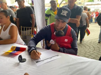 Venezolaner skriver in sig i folkmilisen. Foto: Telesur