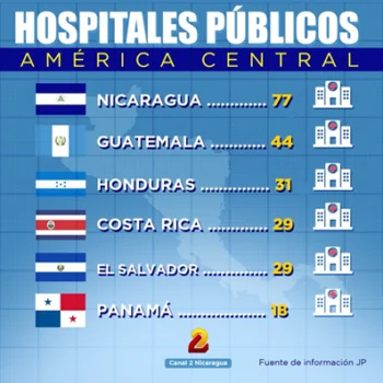 Antalet offentliga sjukhus i Centralamerika. Nicaragua har långt fler än grannländerna