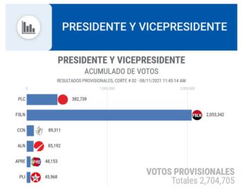 Sandinisterna i FSLN har ett överväldigande stöd. Ovan resultatet från senaste presidentvalet.