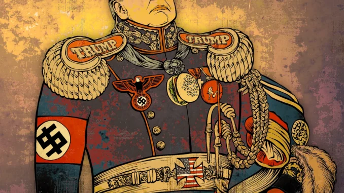 Trump är den gringo-version av Anastasio ”Tachito” Somoza i Nicaragua eller Haitis François ”Papa Doc” Duvalier, som ändrade konstitutionen för att själv bli utsedd till ”president på livstid”. En av de mest berömda bilderna från den haitiske diktatorns långa styre visar Jesus Kristus med en hand på axeln på en sittande Papa Doc, med bildtexten ”Jag har valt honom”.