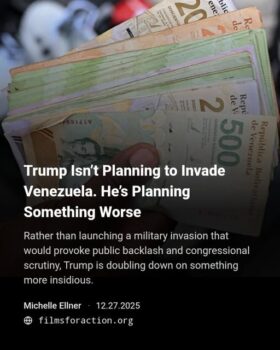 Och det är så Trump kan försäkra den amerikanska kongressen om att han inte ”går i krig” med Venezuela. Det behöver han inte. Ekonomisk strypning medför inga omedelbara politiska kostnader som en militär intervention, även om den orsakar långsam, omfattande förödelse. Det finns inga liksäckar som återvänder till amerikansk mark, ingen värnplikt, inga bombkampanjer som visas på tv. Bara en stadig erosion av livet på andra håll.