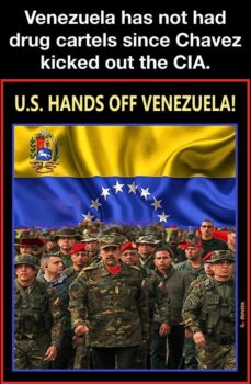 ”Venezuela har inte haft några drogkarteller sedan Chávez sparkade ut CIA”. ”USA, håll tassarna borta från Venexuela!”